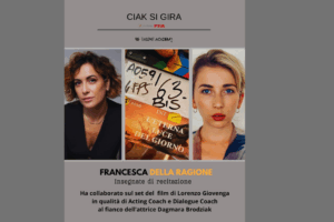 La nostra docente di recitazione FRANCESCA DELLA RAGIONE ha lavorato sul set del nuovo film di LORENZO GIOVENGA, dal titolo provvisorio “L’Eterna Luce del Giorno”, in qualità di Acting/Dialogue Coach al fianco dell’attrice DAGMARA BRODZIAK